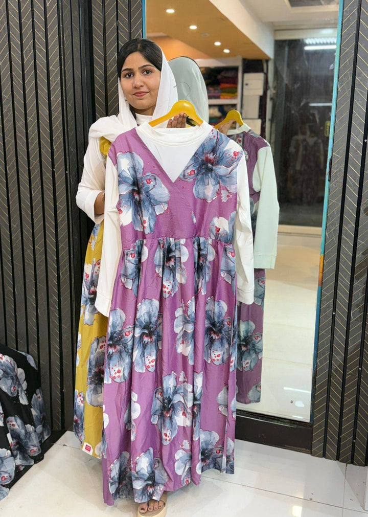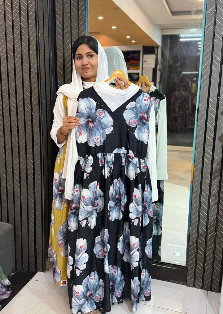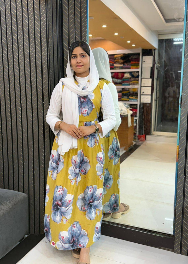 Turn heads with this elegant western gown featuring a bold floral print on a soothing green base. Designed with full sleeves and a flowy silhouette, this maxi dress offers both comfort and style—perfect for casual outings, brunch dates, or vacation wear. Made from breathable fabric for all-day ease.